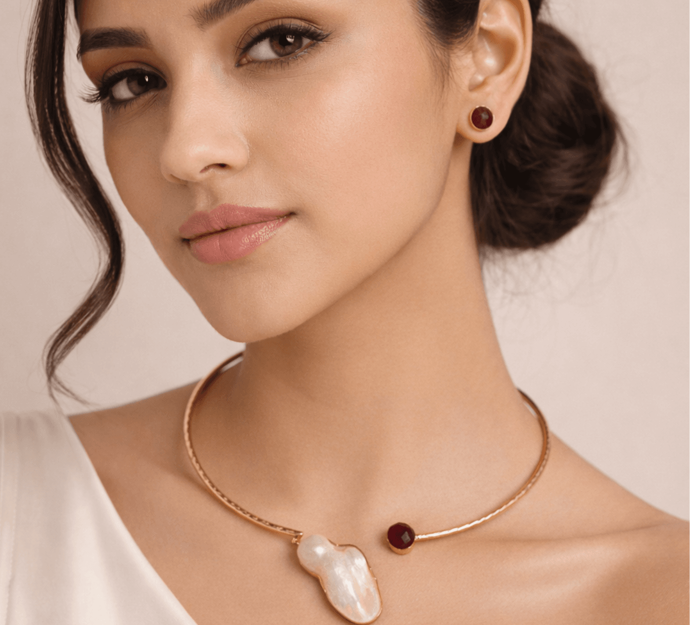 Premium Gold-Plated Designer Necklace set, Modern Minimal Style. Lightweight and Skin Friendly, Brass Base Long lasting Polish