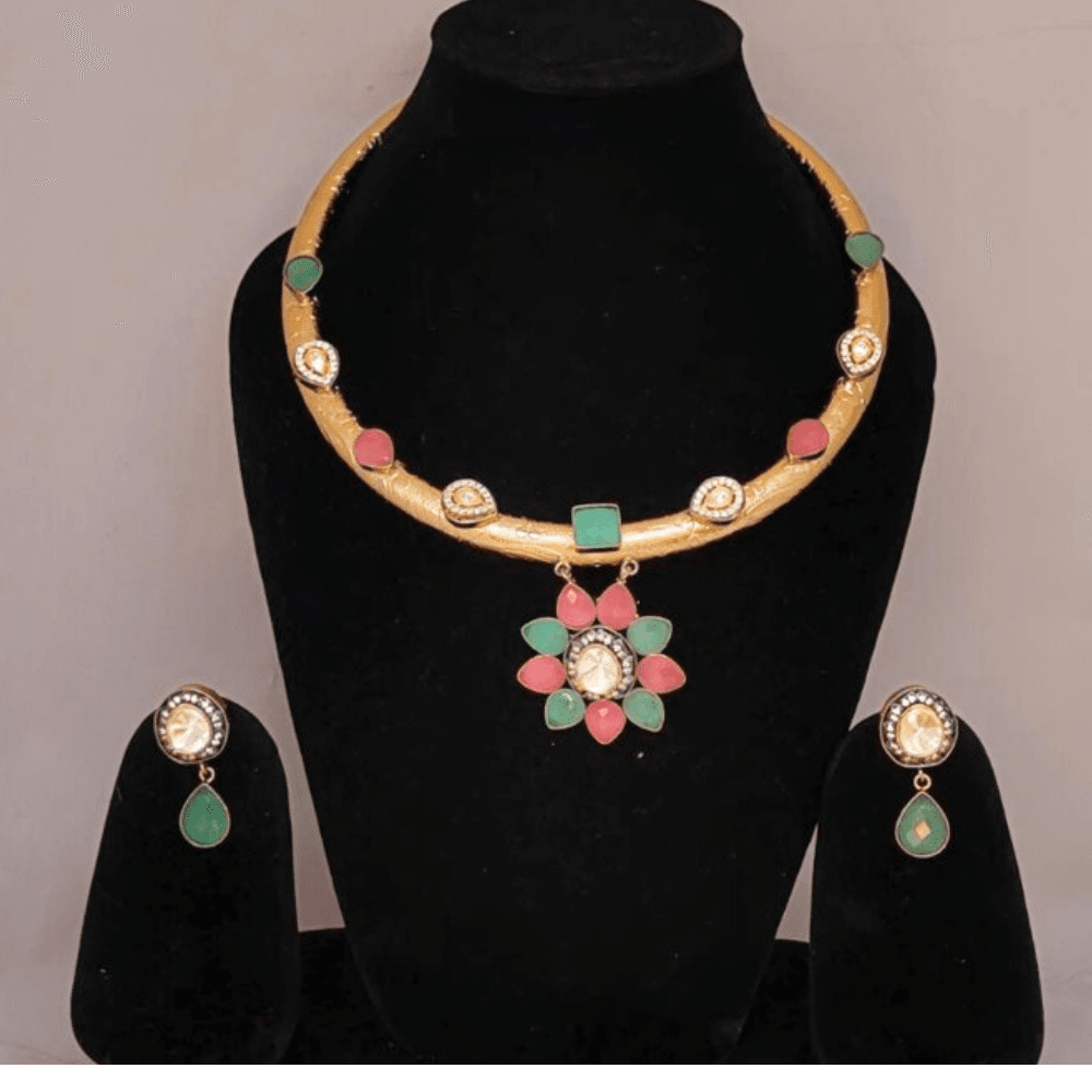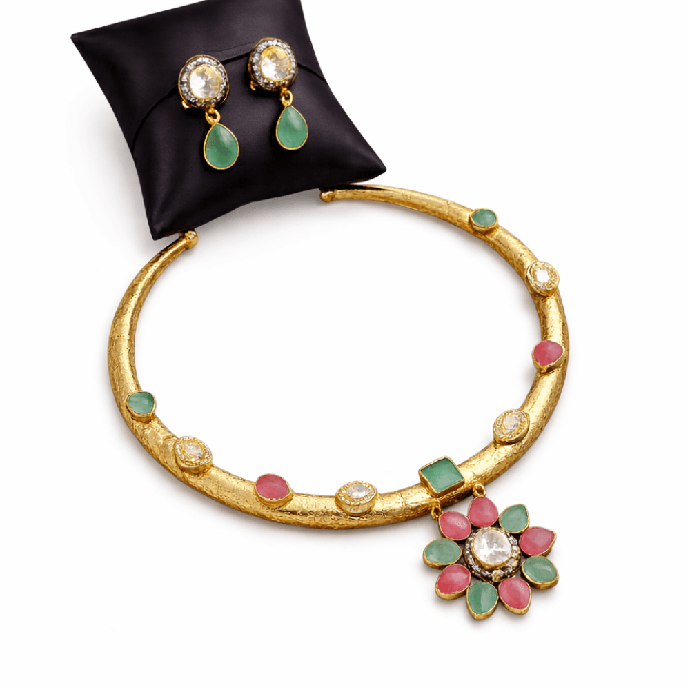 Be the first to review “Kundan Hasli Necklace Set with AD Stone”